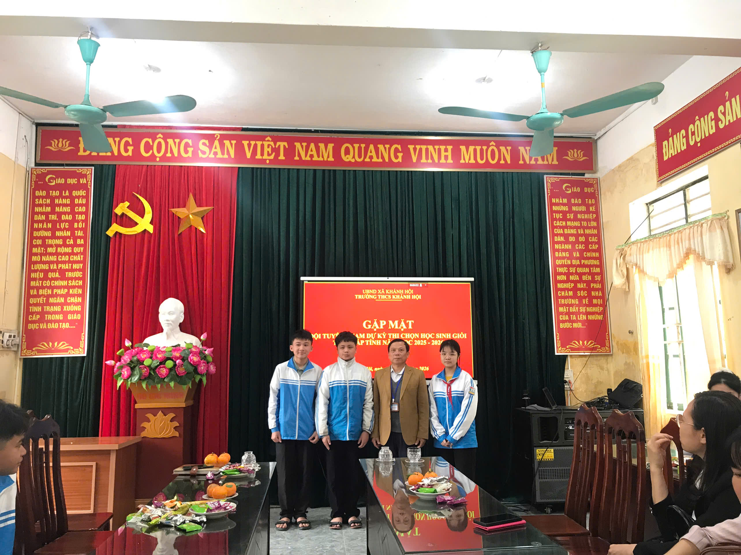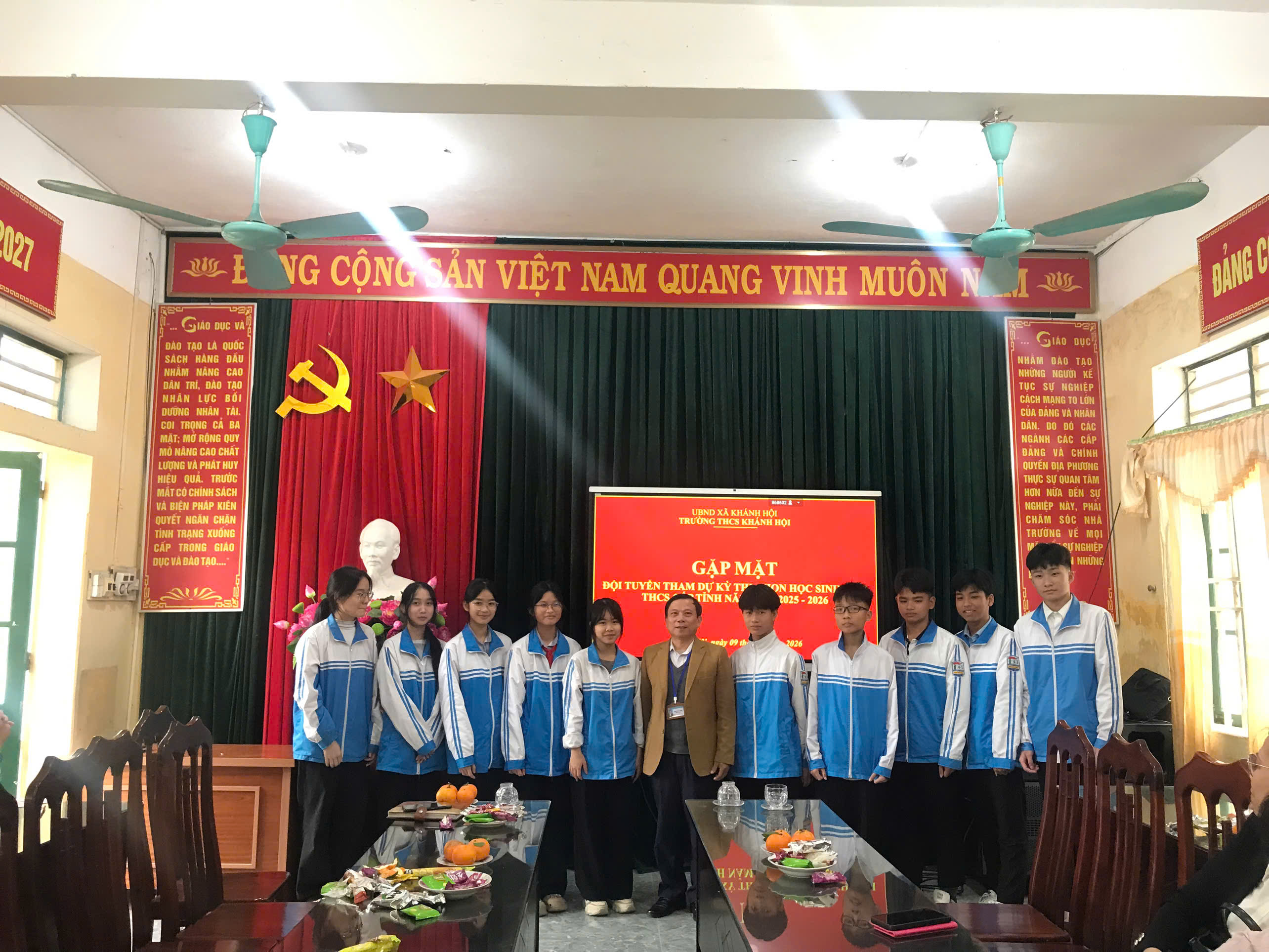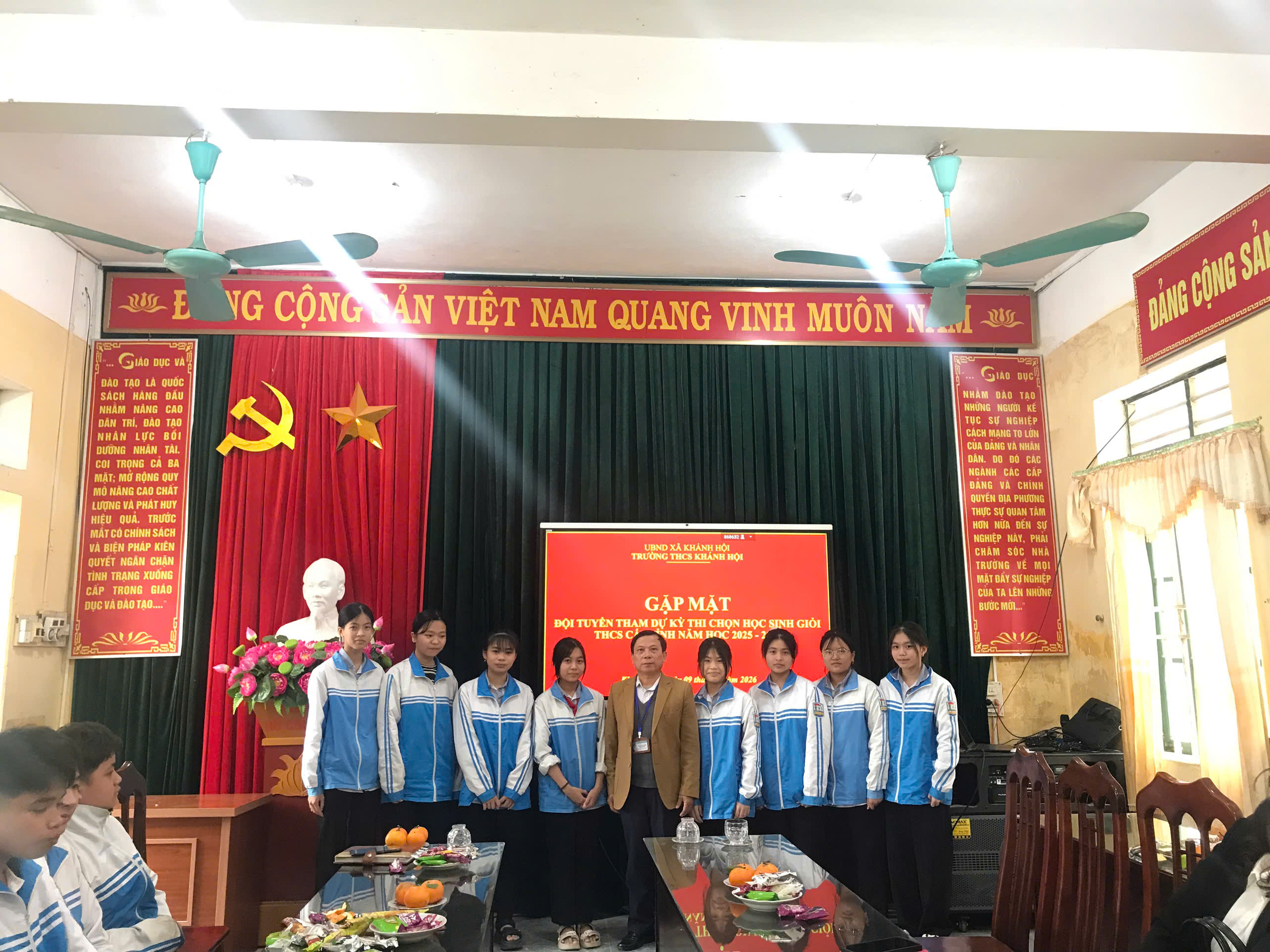 Nhằm động viên tinh thần và tiếp thêm động lực cho các em học sinh trước kỳ thi quan trọng, sáng ngày 09/3/2026 Ban Giám hiệu Trường THCS Khánh Hội đã tổ chức buổi gặp gỡ đội tuyển học sinh giỏi của nhà trường chuẩn bị tham dự kỳ thi học sinh giỏi cấp tỉnh được tổ chức vào sáng ngày 10/3/2026 tại Trường THPT Kim Sơn A.